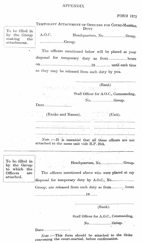 The president and members of a court-martial must be under the command of the convening officer and it will usually be necessary, therefore, for them to be attached to units under the command of that officer. RAF Form 1372 is to be used for this purpose and the instructions on that form are to be complied with.