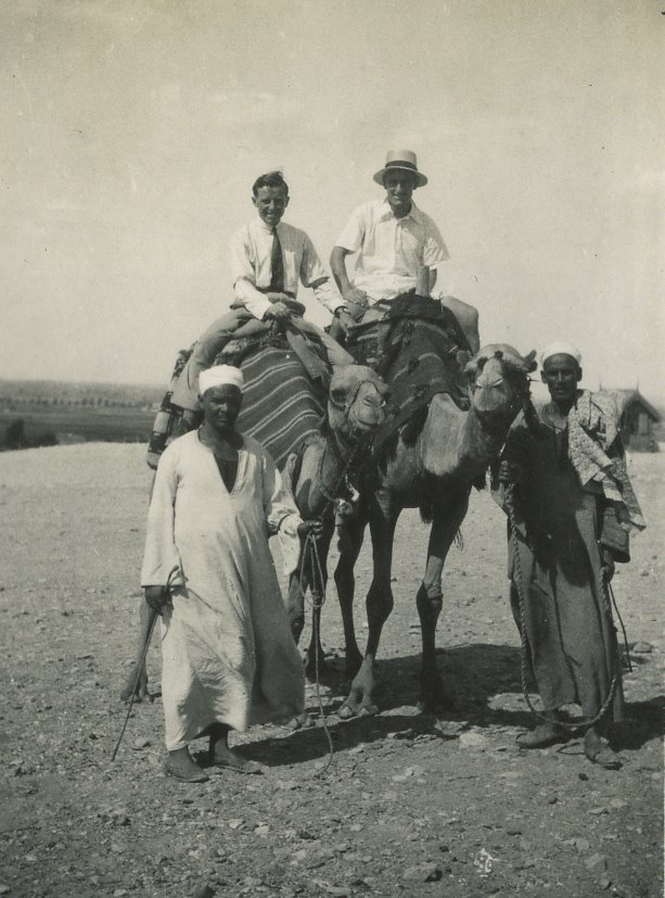 Dad on the camel on the right in Egypt, with his friend Bert Kelly | James Gascoyne |