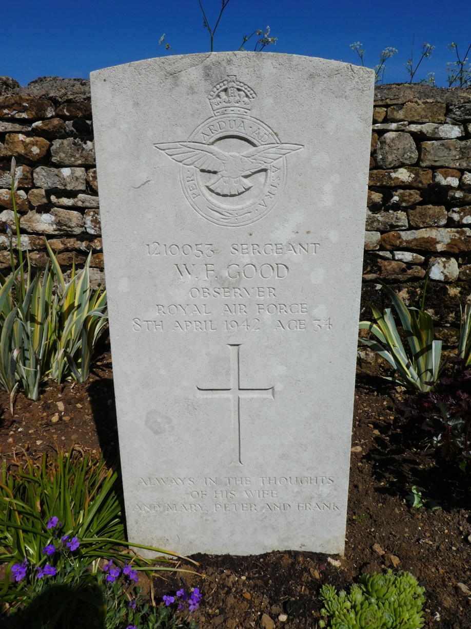 He was killed whilst flying in Stirling I, W7448 LS-E of No 15 Sqn, which was lost over the North Sea on a raid to Essen. He is buried in Kiel War Cemetery. |