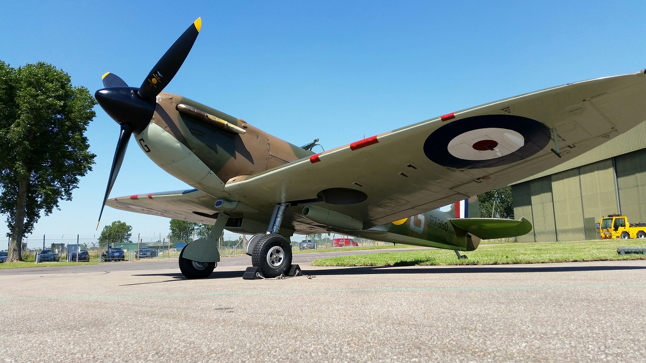 Spitfire IIA, P7350 of the BBMF outside their hanger at RAF Coningsby |