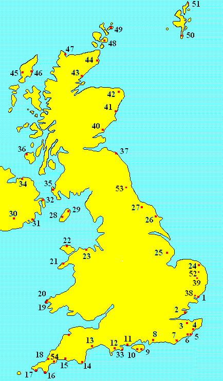The map below shows the approximate location of the stations making up the UK 'Chain Home' network. Further details on each station is contained in the table below, click on the number in the map to take you to relevant details.