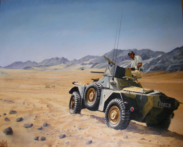 Plt Off Michael Fonfe in a Ferret Scout Car of No 16 Squadron in Aden, 1967. |