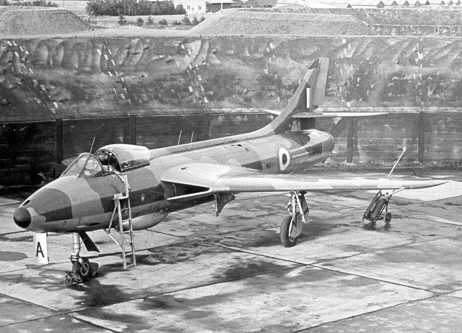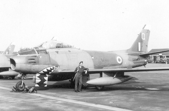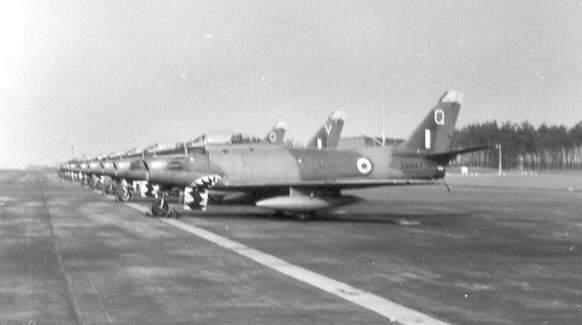 The squadron reformed at Fassburg in Germany on 12 May 1951 in the fighter-bomber role, equipped with Vampire FB Mk 5s, but on 7 March 1952 it re-located to Jever. In January 1954 it reverted to the day fighter role when its Vampires were replaced by Sabre F Mk 4s, by which time it had been based at Bruggen since 6 July 1953. Hunters arrived in April 1956 but just over a year later on 31 May 1957, the squadron disbanded at Bruggen, to where it had moved on 6 July 1953.